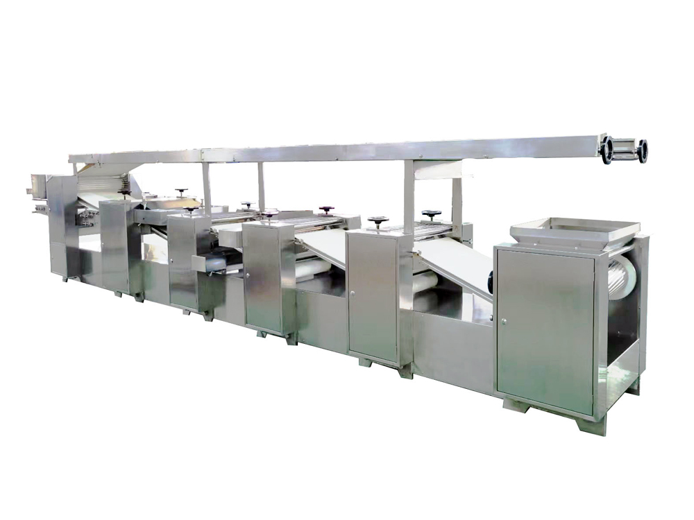制皮機(jī)為臥式成型機(jī),通過(guò)傳送機(jī)構(gòu)將各道軋輥線速度比合理分配,實(shí)現(xiàn)從投料到制皮成型自動(dòng)化生產(chǎn)。適用于餃子皮、餛飩皮、燒麥皮、蒸餃皮、以及燙面類面皮成型。